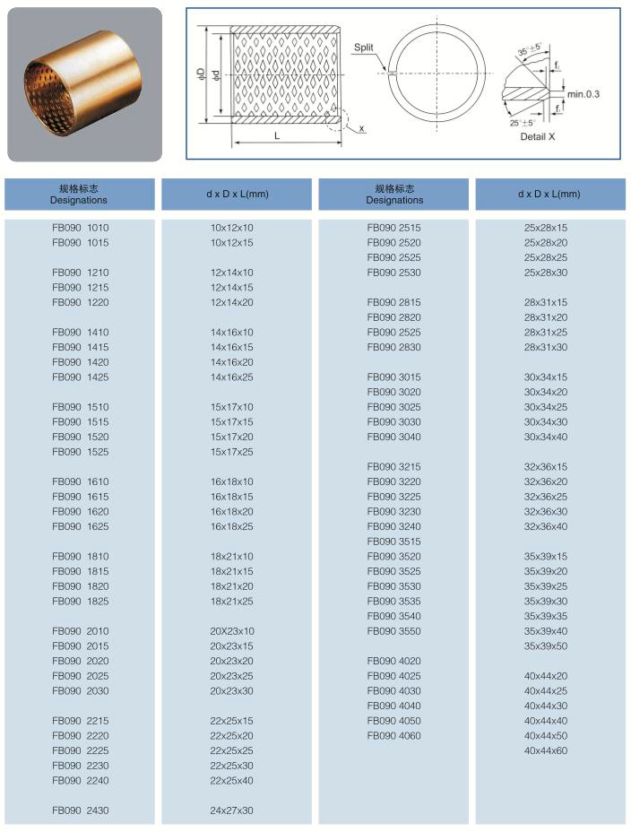 FB090標準襯套尺寸